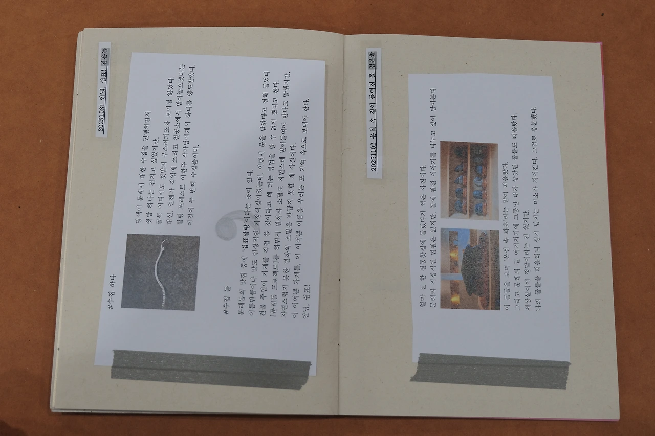 진(zine) 작업을 위해 사진과 메모를 정리하는 일은 생각보다 많은 시간이 필요했다.