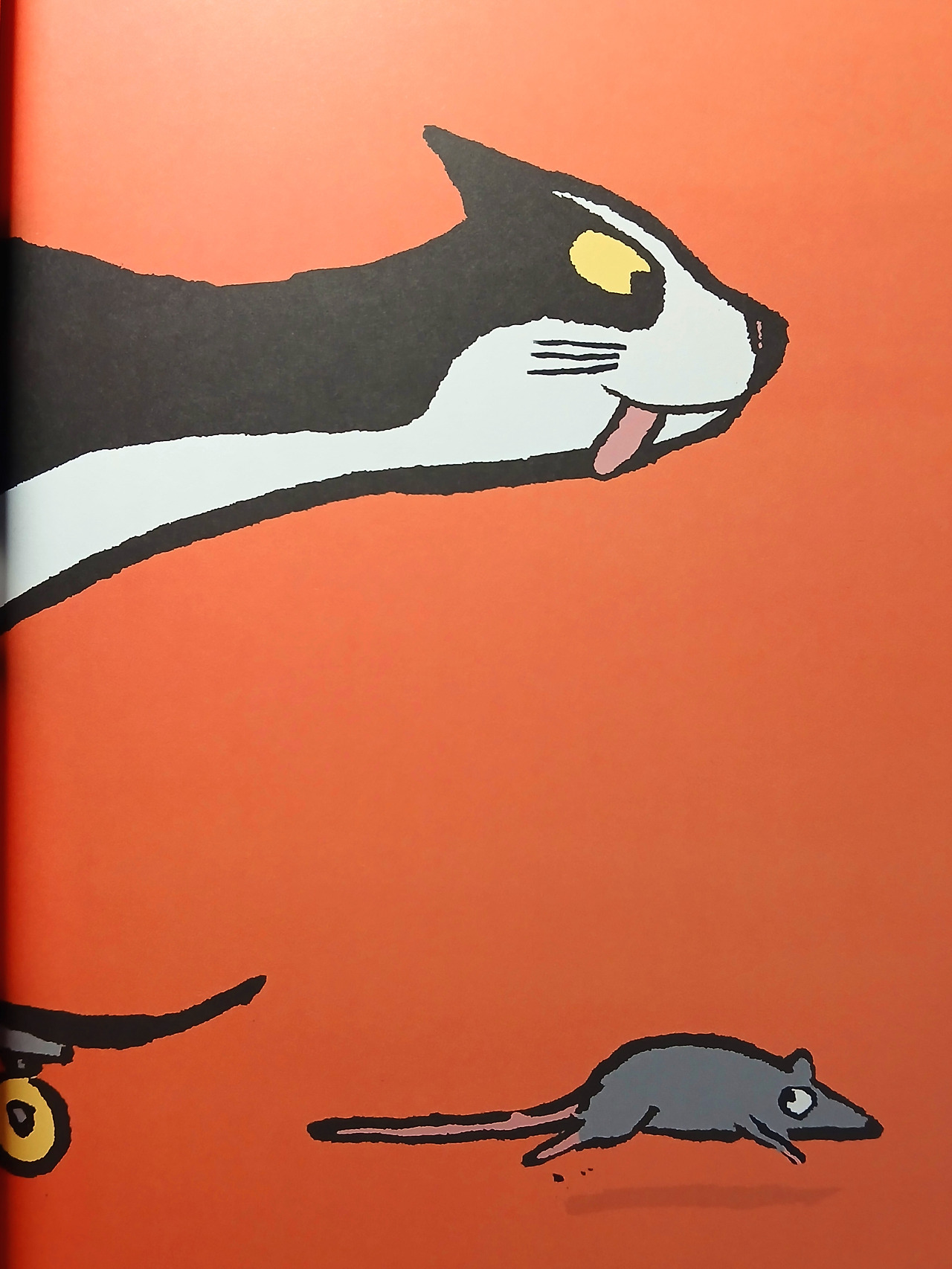 스케이트보드를 타고 쥐를 쫓아다니고,