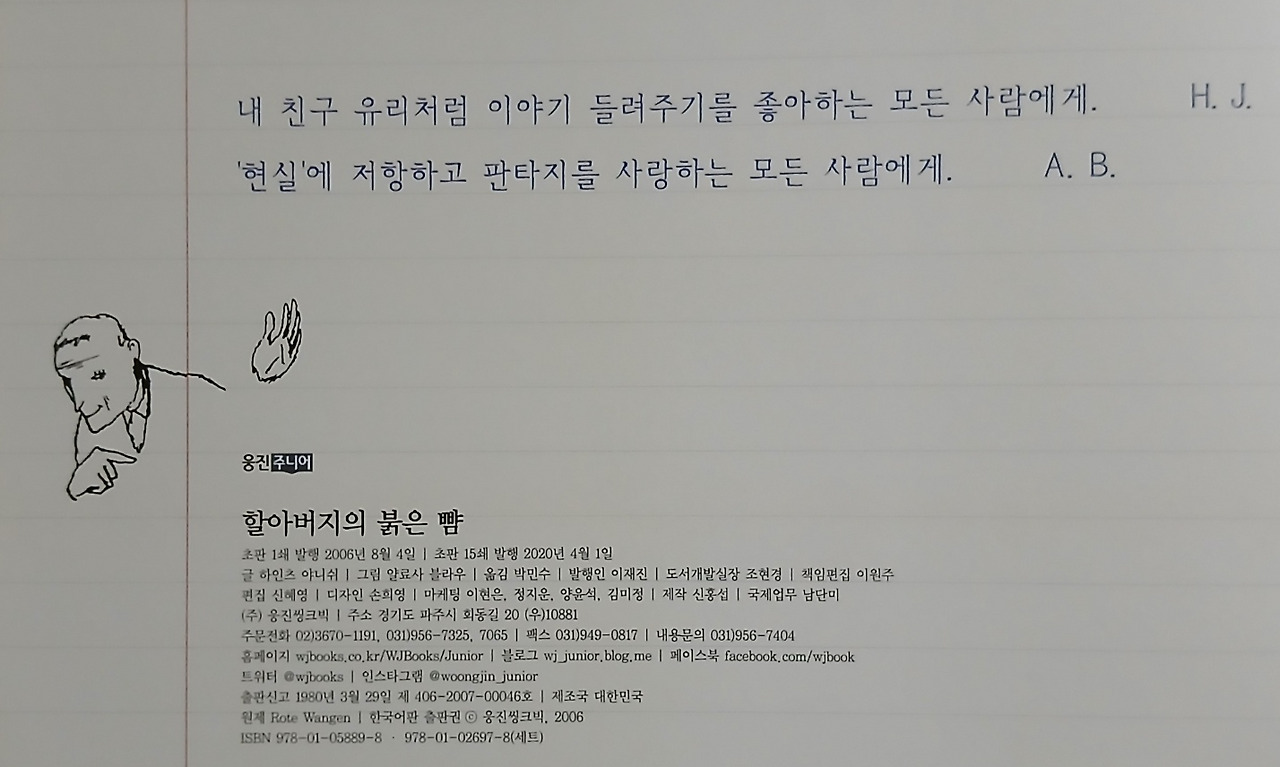 Book. 『할아버지의 붉은 뺨』 하인츠 야니쉬 글 / 알료사 블라우 그림 / 박민수 옮김, 웅진주니어, 2006.