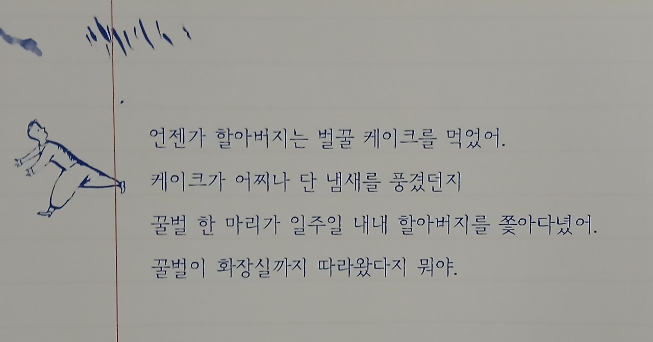 언젠가 아빠의 옛날 물건들 틈에서 학창 시절 노트가 나왔는데, 노트 한 귀퉁이에 그려진 작은 그림들이 이것과 상당히 비슷한 느낌이었다는 게 문득 떠올랐다.