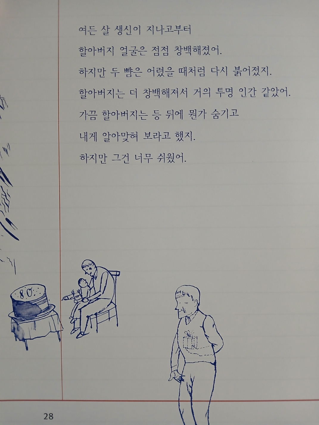 할아버지의 이야기에 따라 공책에 그려 넣은 듯한 삽화가 책에 활력을 더한다.