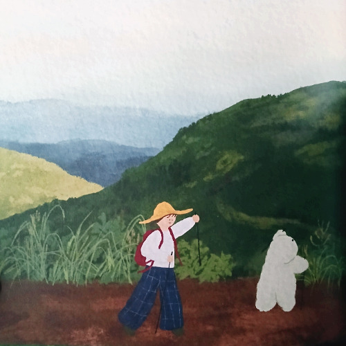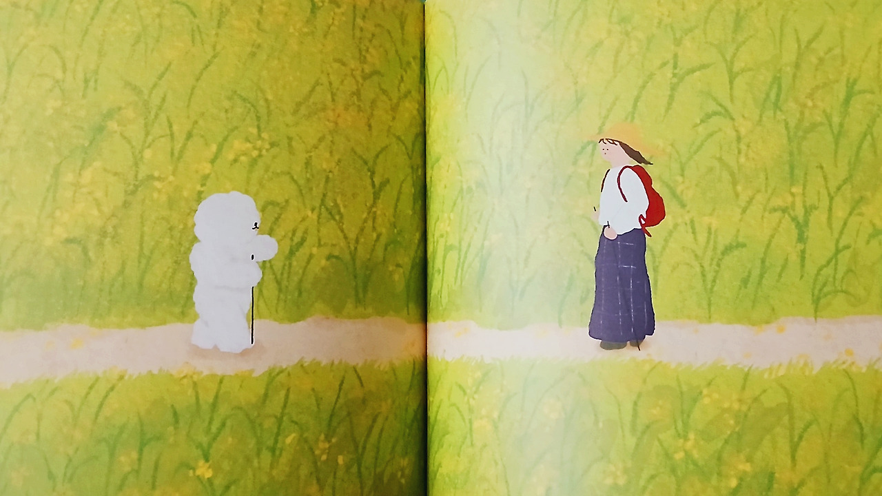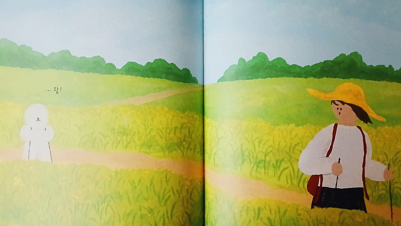 둘은 함께 푸르른 들길을, 길쭉길쭉한 나무들이 늘어선 숲길을, 징검다리가 놓인 개울을 걷고 또 걷는다.