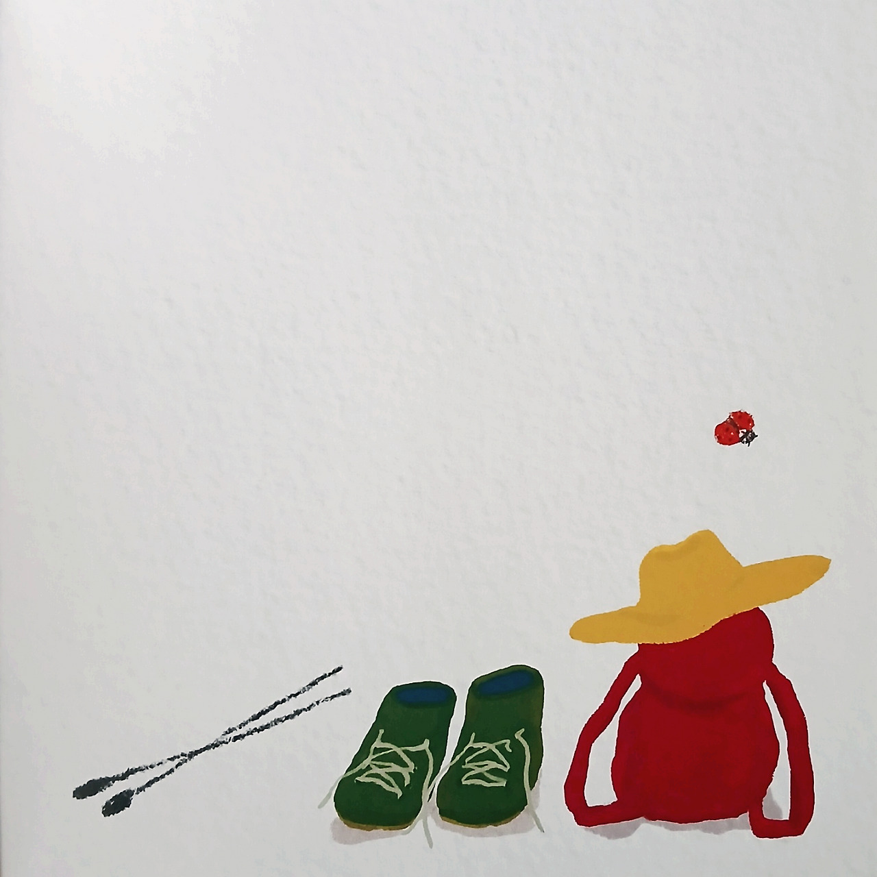 노란 챙모자에 빨간 배낭, 짙은 초록색 등산화와 등산스틱.. 단출한 구성인데 새삼 화려하고 알찬 느낌이다.