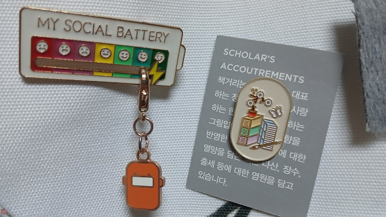 천가방을 주로 이용하는 나는 그때그때 기분에 맞춰 배지를 달고 다니길 즐긴다.
