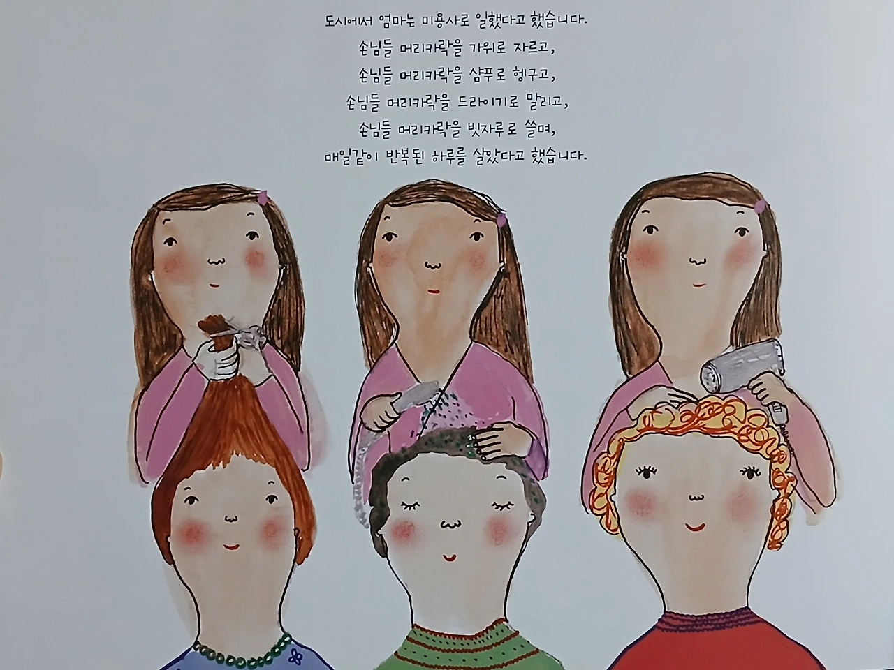 무표정하게 머리를 손질하고 있는 젊은 시절의 엄마와 손님들의 모습이 너무나 잘 대비되면서 이후의 이야기를 암암리에 스포한다.