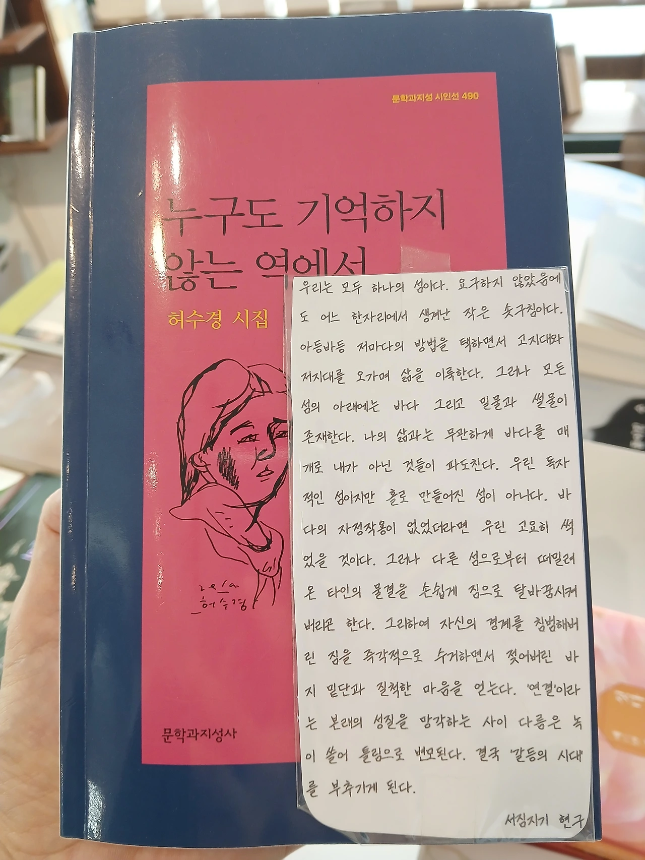 독립서점은 특히나 책과 놀기 아주 좋은 장소다. 그 서점(서점지기)만의 특색 있는 큐레이션과 손편지 같은 느낌의 '소개글이나 추천글'을 읽다 보면 시간이 금세 지나간다.