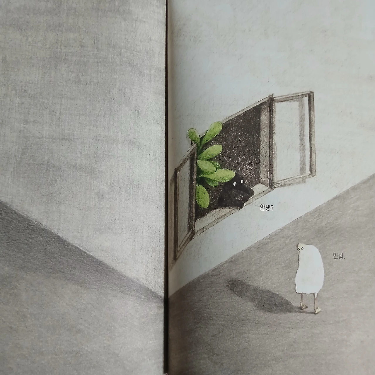 살림살이를 차곡차곡 들여놓던 까마귀는 한아름 되는 화분을 하나 들여놓는다. 그리고는 화분을 향해 처음 말을 꺼낸다.