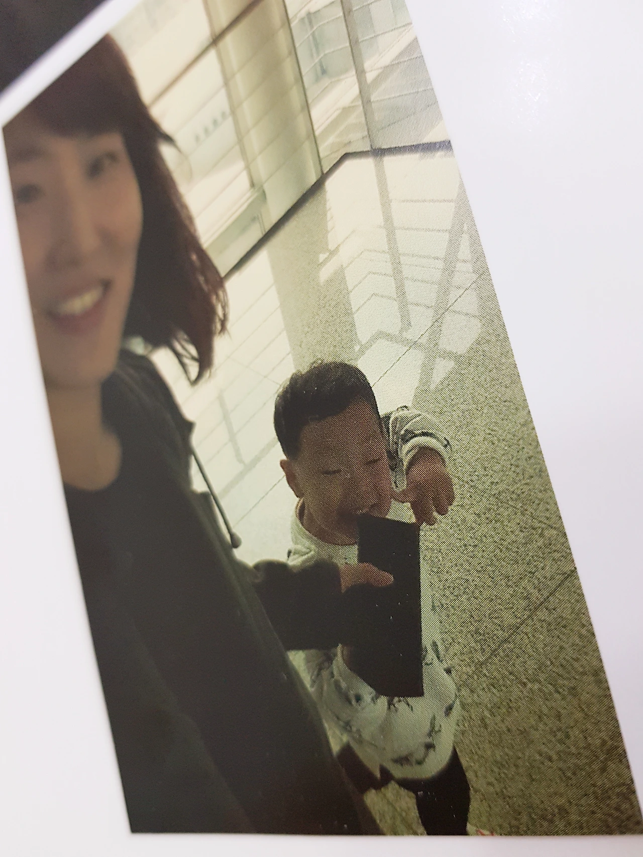 포토북의 사진을 휴대폰으로 다시 찍으니 레트로 갬성이 살아난다. 페이지를 들거나 구부려 굴곡을 만들기도 하고, 애물단지처럼 별수 없이 생기는 빛 반사로 아예 블러 효과를 내기도 한다. 아들에게 미안해지는 마음을 걷어내고 재미를 좇다 보니 의미 있는 과정이 될 것도 같다.