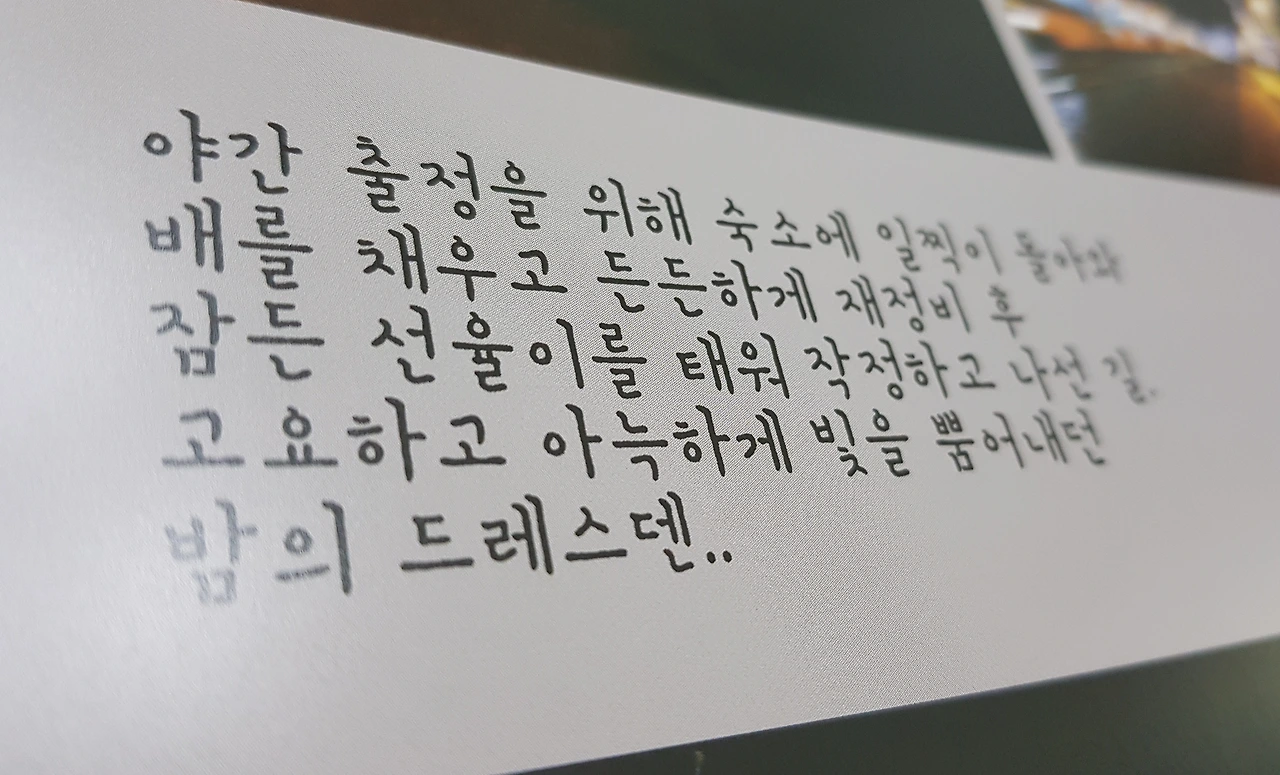 이날은 예쁘다고 소문이 자자한 드레스덴의 야경을 볼 수 있는 마지막 기회였다. 브륄의 테라스에서 일정을 마무리하고 숙소로 돌아와 어둠을 기다렸다. 어둠을 그렇게 간절히 기다리는 설렘이라니. 주중에도 보고 싶어 안달하던 연애 초기, 어둑해지는 풍경을 보며 퇴근시간에 맞춰 애인을 만나러 갔던 길의 설렘과비슷했던가.