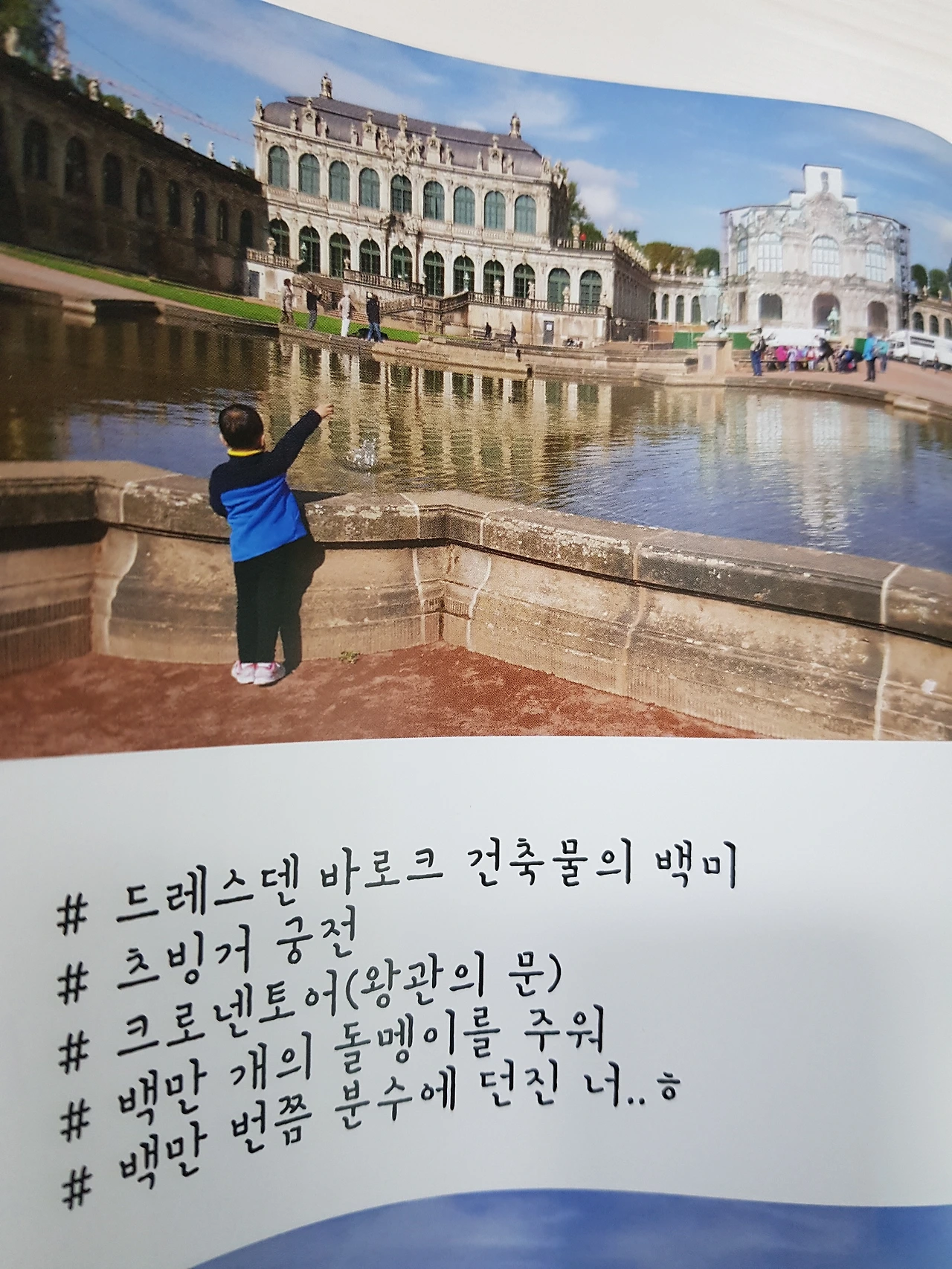 사실 드레스덴은 지인이 이민을 가 살고 있는 도시였다. 여행 중 만나볼 수도 있으려나 기대했지만 지인 가족은 스페인으로 휴가를 떠나 있는 상황이었다. 여기가 그 집이려나, 이 동네에 살고 있으려나 넘겨짚는 재미로 주택가의 한적한 길을 산책하던 중이었다. 멈출 타이밍을 결정한 건 아들이었다. 여기가 마침내 우리가 당도할 곳이었다는 듯, 유모차에서 내려 본격적으로 놀기 시작했다. 한쪽에는 주민들의 차량이 정렬돼 있고 보도에도 차도에도 관광객의 발길은 닿지 않을 그런 곳이었다.