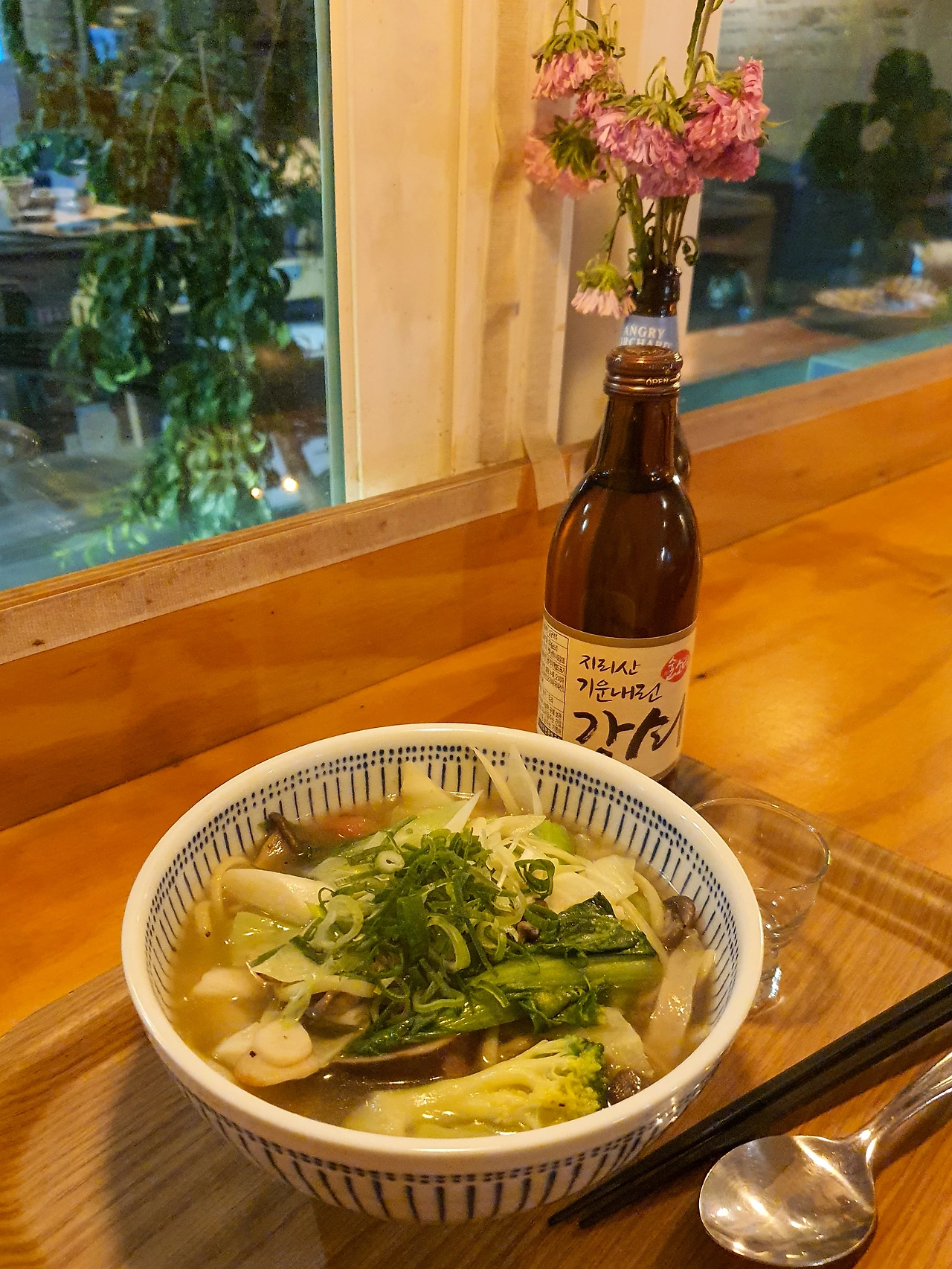 ‘혼자 오면 더 좋은 술집’이라는 표현처럼, 딱 한 번 친구와 같이 ‘비건 파티’에 간 걸 제외하면 언제나 혼자 <광장>에 갔다. 책을 읽거나 영화를 봤다. 창밖을 보며 멍을 때릴 때도 많았다. 어디서든 할 수 있는 것들이었지만 <광장>에서 할 때가 몸도, 마음도 가장 든든했다.