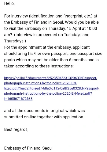 다만 코로나로 인해 주한 핀란드 대사관 방문 시 사전 예약이 필수가 되었습니다. 본인이 아무 날에 가서 대사관 문앞을 서성여도 소용이 없습니다. 네, 그건 제가 한 짓이었거든요. ㅋㅋ