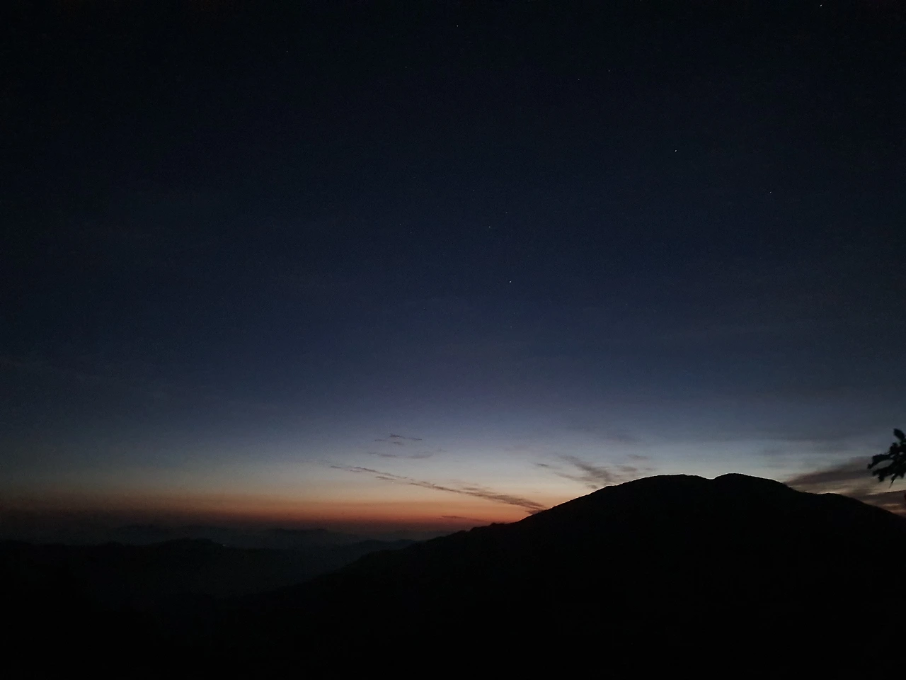 랜턴이 없어서 휴대폰 라이트를 켜고 걸었다. 앞뒤에서 오는 사람들의 랜턴 불빛에 신세를 지면서 걷기도 했다. 별은 여전히 하늘에 가득해서 별이 하늘의 자리를 빌린 게 아니라 하늘이 별의 자리를 빌린 것 같아 보였다. 밝지만 국소적인 땅의 빛, 조금 어둡지만 드넓은 하늘의 빛 그 둘과 함께 한 등산 초반부. 충분했지만 든든하다는 느낌이 들 정도는 아니었다. 솔직히, 춥고 어두웠다.