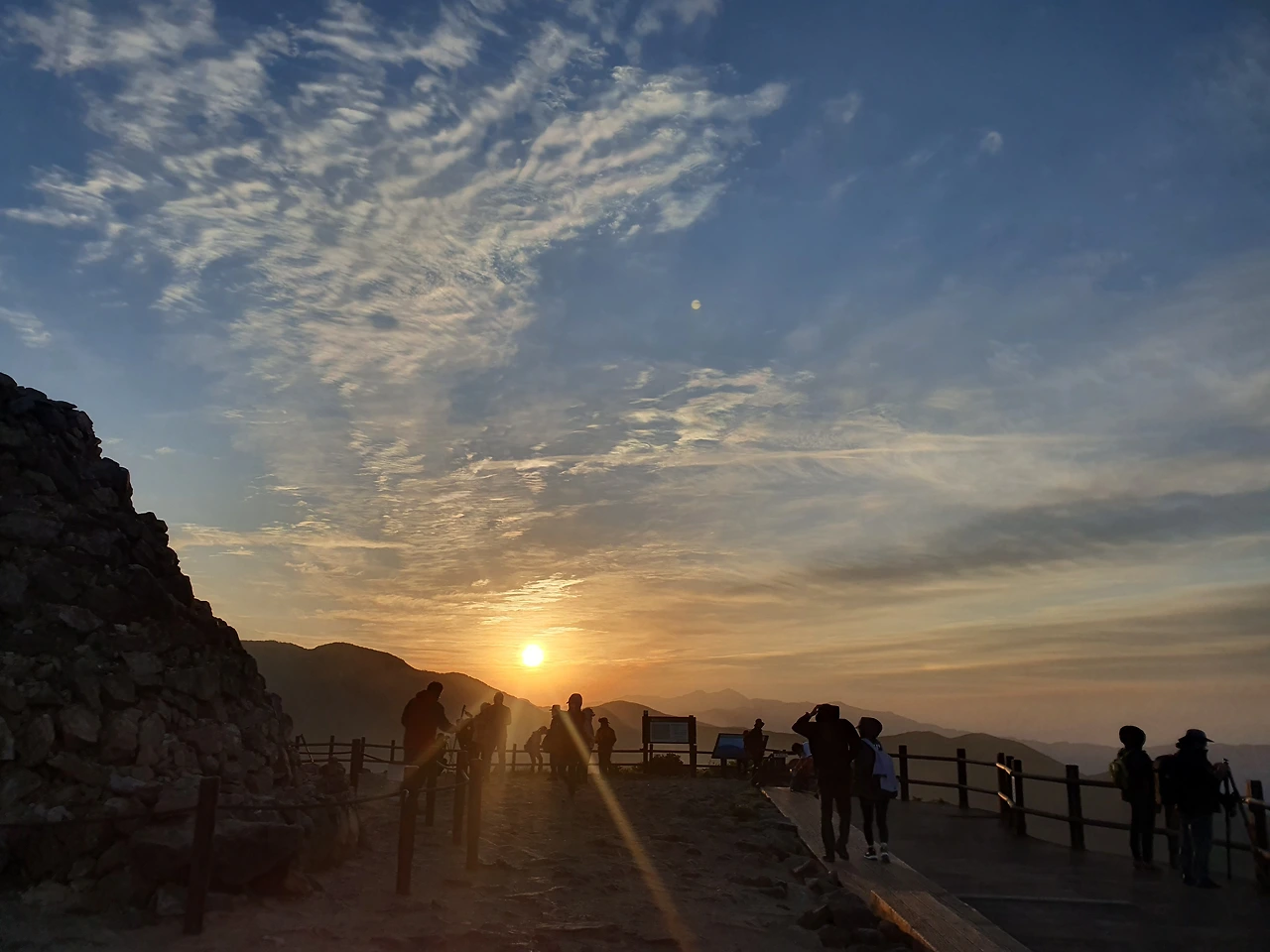 싱숭생숭. 추위는 절정에 달하고 해는 생각보다 금세 뜨지 않고 '이게 무슨 고생인가' 싶었다. 나와 같이 과태료가 부가된 이들은 해가 뜨기 전에 내려갔다. 조금만 더 있어보기로 한 나에게 오전 5시가 넘어서자 '태양의 기운'이 다가오기 시작했다. 말 그대로 태양의 기운. 시각적으로도, 촉각적으로도 태양이 나와 가까워지고 있음을 알 수 있었다. 그 사이 사람들도 더 많이 올라왔고 나는 생애 두 번째 노고단을 생생히 맞아들였다.