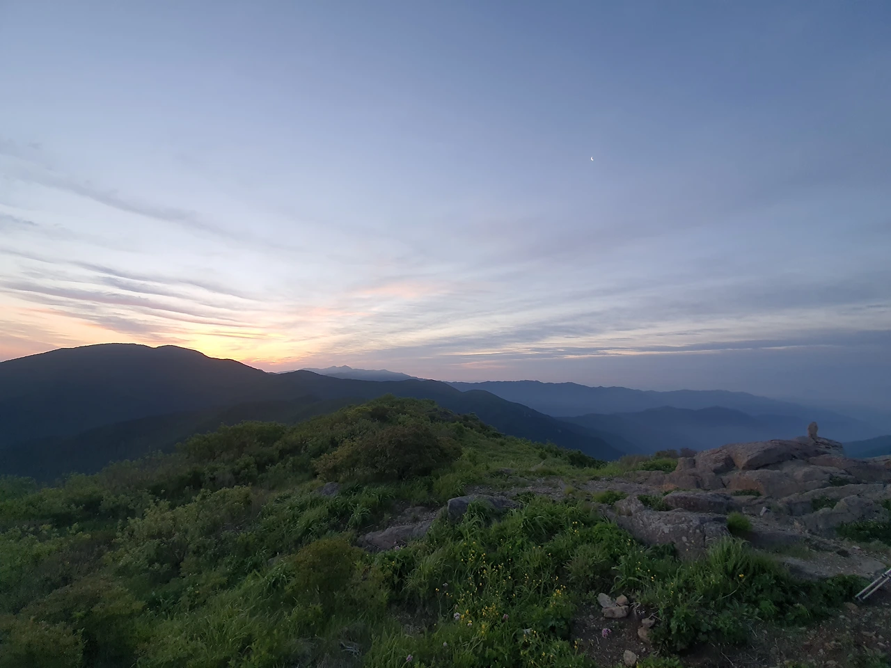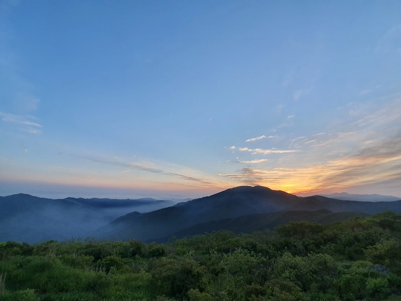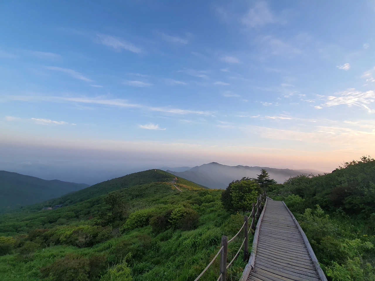 노고단에 가까워 오자 땀이 슬며시 나기 시작했다. 잠도 어느새 달아났다. 사전에 입장을 예약해둔 노고단의 입구에 다다랐을 때가 새벽 4시. 입구에서 기계를 통해 QR코드 인증이 됐고 안으로 들어설 수 있었다. 깜깜하기만 하던 하늘이 아주 먼 곳에서부터 '여명'이라 할 만한 빛을 데려오고 있었다. 색감이 마법 같았다. 그리고 역시나, 2년 전에 왔을 때처럼 노고단의 바람은 어마 무시했다.