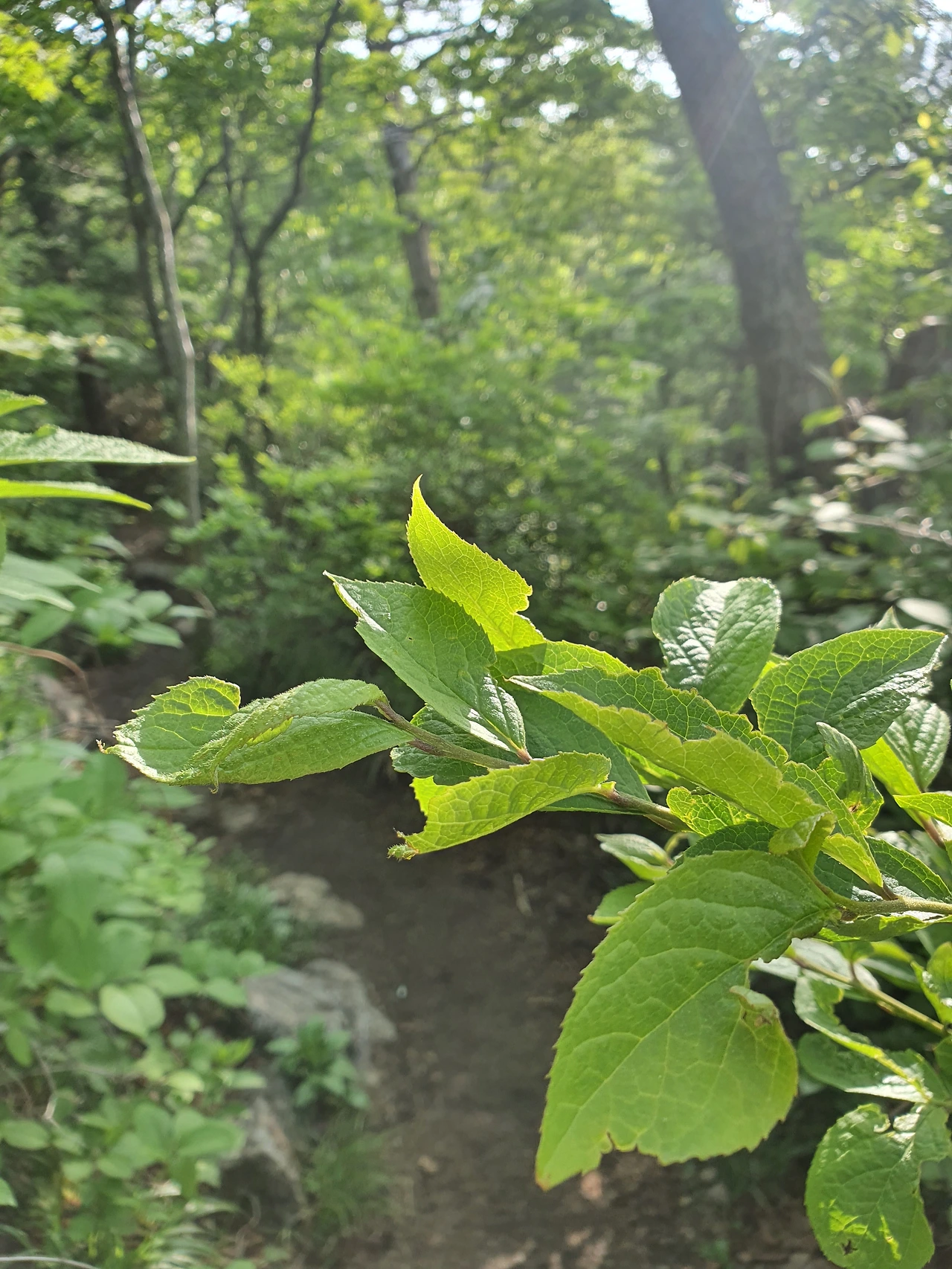 천왕봉 갔다가 중산리로 내려가는 애초의 목표(?)는 불가능하게 됐음을 받아들이고 가는 만큼 가다가 하산하는 것으로 결정했다. 연하천 대피소로 가던 길처럼 그 대피소를 벗어나서 다시 나선 길도 앞서의 숲길이라는 수식어가 잘 어울릴 만큼 차분했다. 물론 그 때나 이 때나 힘든 바위길 같은 것도 꽤 있었다. 그래도 힘든 줄을 몰랐다. 아니, 몸은 이미 힘든데 내가 몰라줬다.