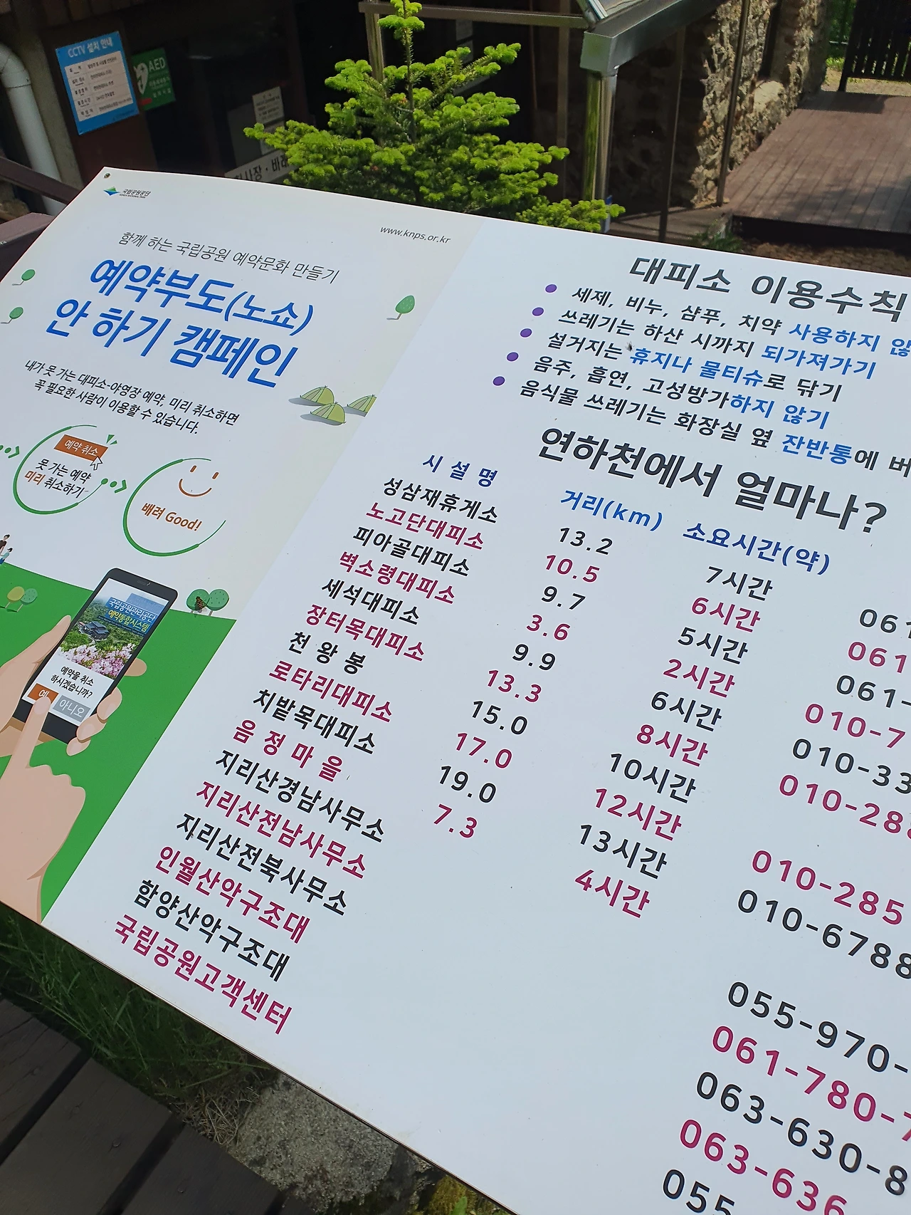 "선생님 제가 오늘 천왕봉 찍고 중산리로 내려가려는데 시간이 될까요? 저기(대피소에 있던 '지점별 소요시간 안내도'를 가리킴) 보니까 시간이 도저히 안될 것 같은데 저는 되는 걸로 보고 왔거든요. 뭐가 잘못된 건지." 새벽에 라이트를 켜고 걷느라 금방 닳은 휴대폰 배터리를 충전하면서 바로 옆의 직원 분에게 여쭈었다. 그분은 그 정보를 어디서 봤는지부터 물었다.