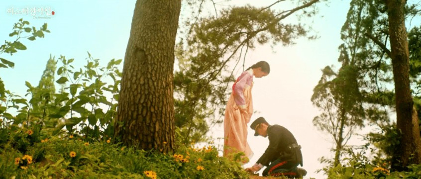 그 순간 애신(김태리)는 유진(이병헌)에게 안기며 속삭인다.