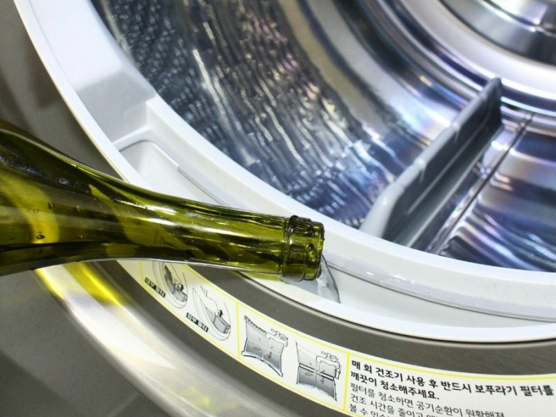 먼지 필터 청소만 하지 않는다. 사용 횟수에 따라 주기적으로 콘덴서 케어가 꼭 필요하다. 주둥이가 가늘고 긴 와인병은 평소 장식용으로 세워 두었다가 이렇게 쓰임새를 찾아 활용하는 편이다. 건조기 문 앞에도 한눈에 보이도록 설명문이 적혀있다. '매 회 건조기 사용 후 반드시 보푸라기를 깨끗이 청소해 주세요. 필터를 청소하면 공기순환이 원활해져 건조 시간을 줄이고 에너지 절약 효과를 볼 수 있습니다.'라고 말이다. 기계 관리만큼은 시키면 시키는 대로 잘하는 편. 잘 관리해서 건조시간도 줄이고 전기세도 아껴보자.