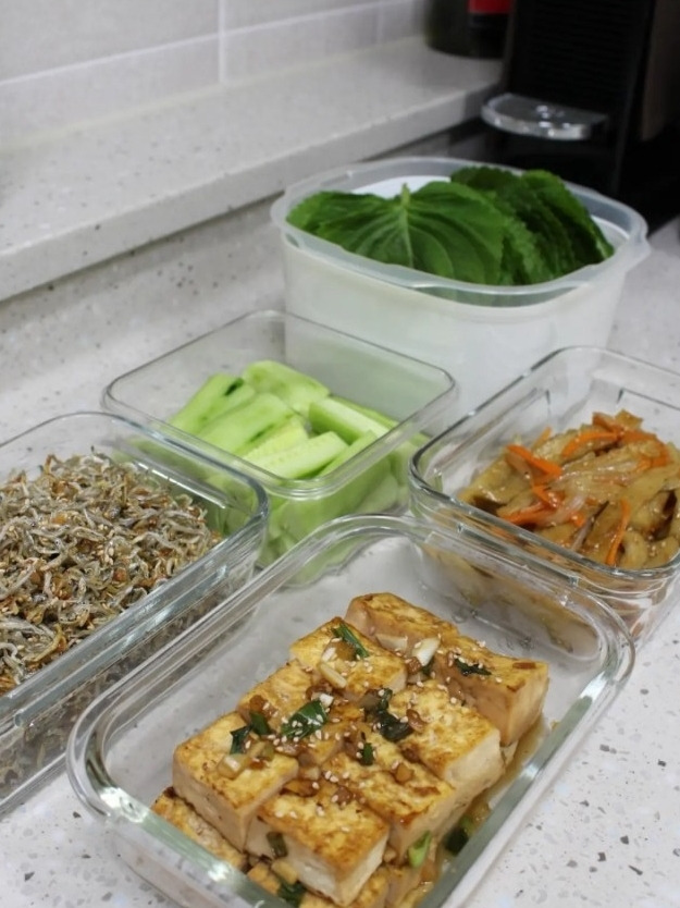 두부는 한 끼, 어묵은 두 끼면 끝날 테고 멸치는 비교적 오래 먹을 양이다. 주먹밥, 볶음밥으로 해 먹기에 좋은 밑반찬이다. 온 가족이 함께 먹는 저녁 식탁에는 초록 잎 쌈 채소를 꼭 올리려고 노력한다. 나쁜 거 다 따지면 먹을 거 하나 없고 칼로리 높고 영양가 없는 음식들이 넘치는 요즘 세상에. 매일 집에서, 가장 손쉽게 챙길 수 있는 유일한 건강식은 신선한 채소와 제철 과일이다.