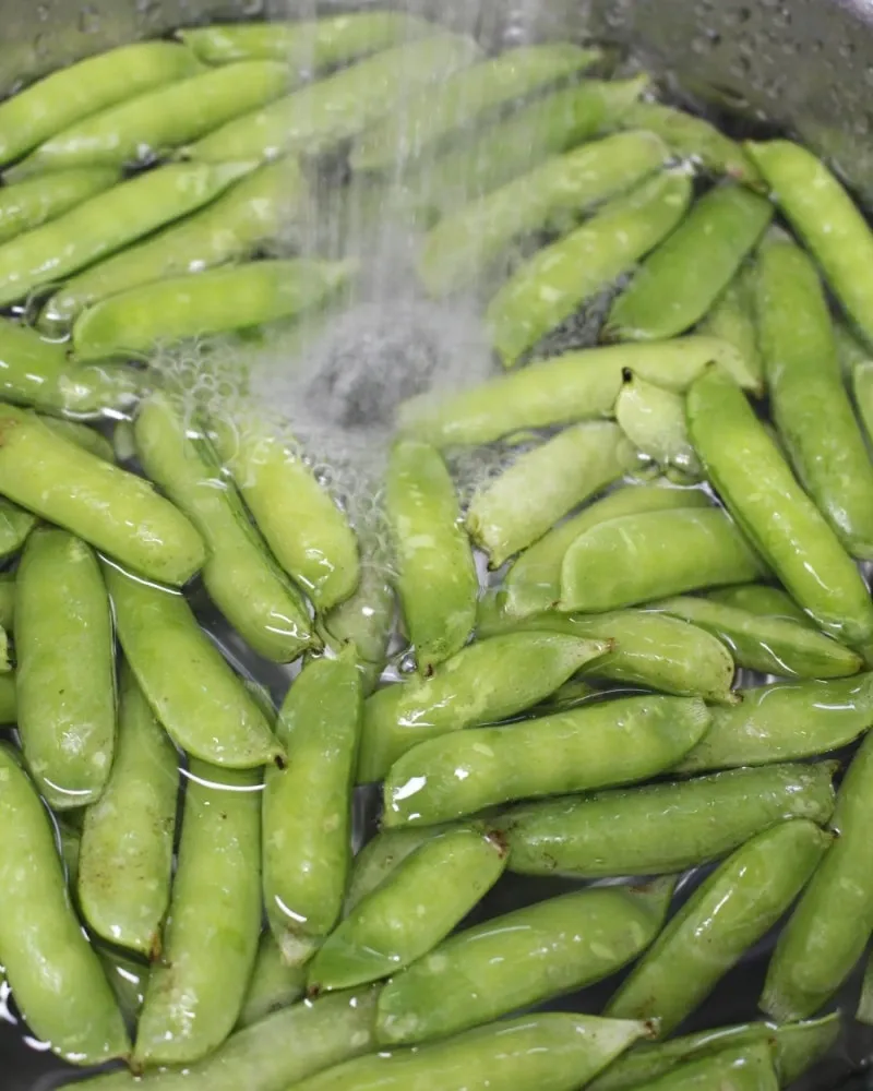 잘 삶아진 완두콩은 찬물에 한번 헹궈