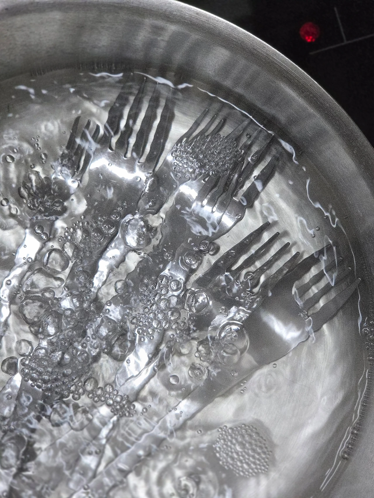 베이킹파우더를 푼 물에 포크를 삶고 작은 솔로 그 좁은 사이사이를 문지른다. 서두르지 않는 손길 끝에 포크는 본래의 맑은 빛을 되찾는다. 덤으로 함께 삶은 냄비의 물때까지 사라져 반짝이고 있었다.