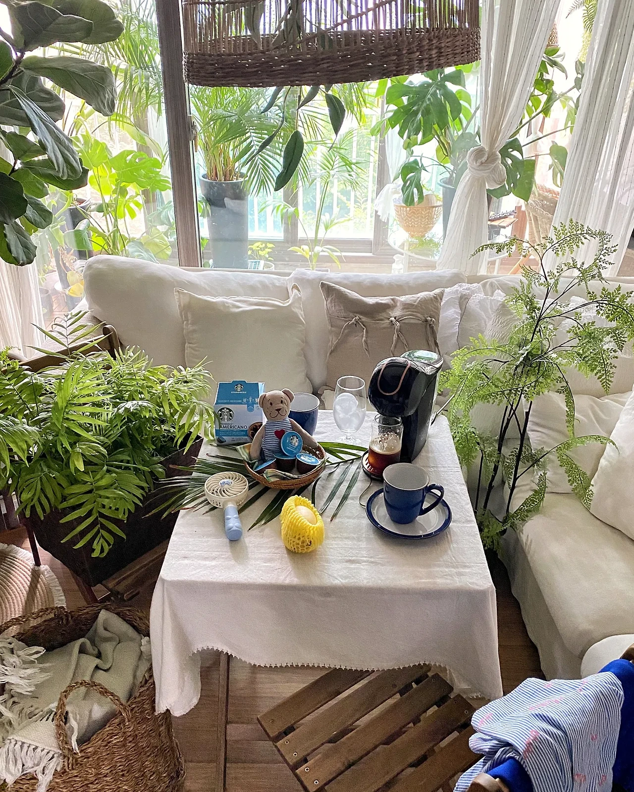 베란다를 치우고 침구류를 정리하고