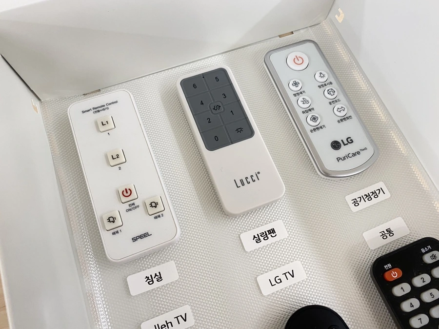 라벨 프린터로 리모컨마다 이름표를 출력해 주면 끝.