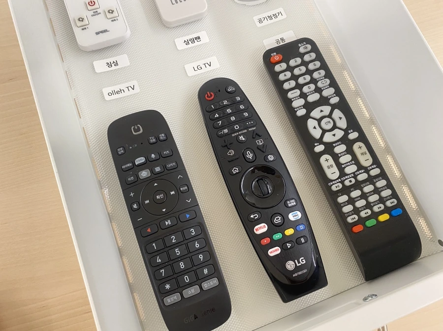 가장 안쪽에 해당아는 위 줄은 자주 사용하지 않는 리모컨 위주로 두고,
