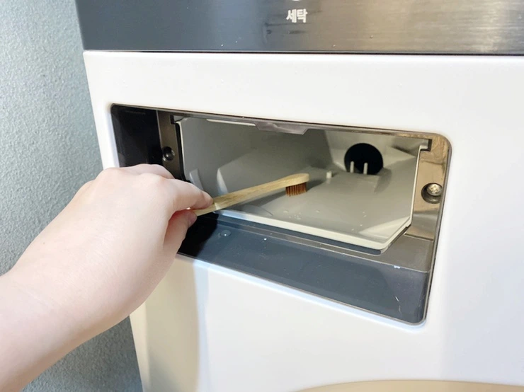 물티슈나 칫솔을 이용해 세제통을 닦아주거나