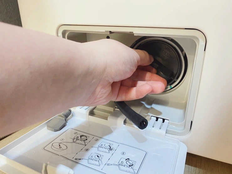 배수호스에 마개를 열어 세탁기에 남은 물을 비운 후