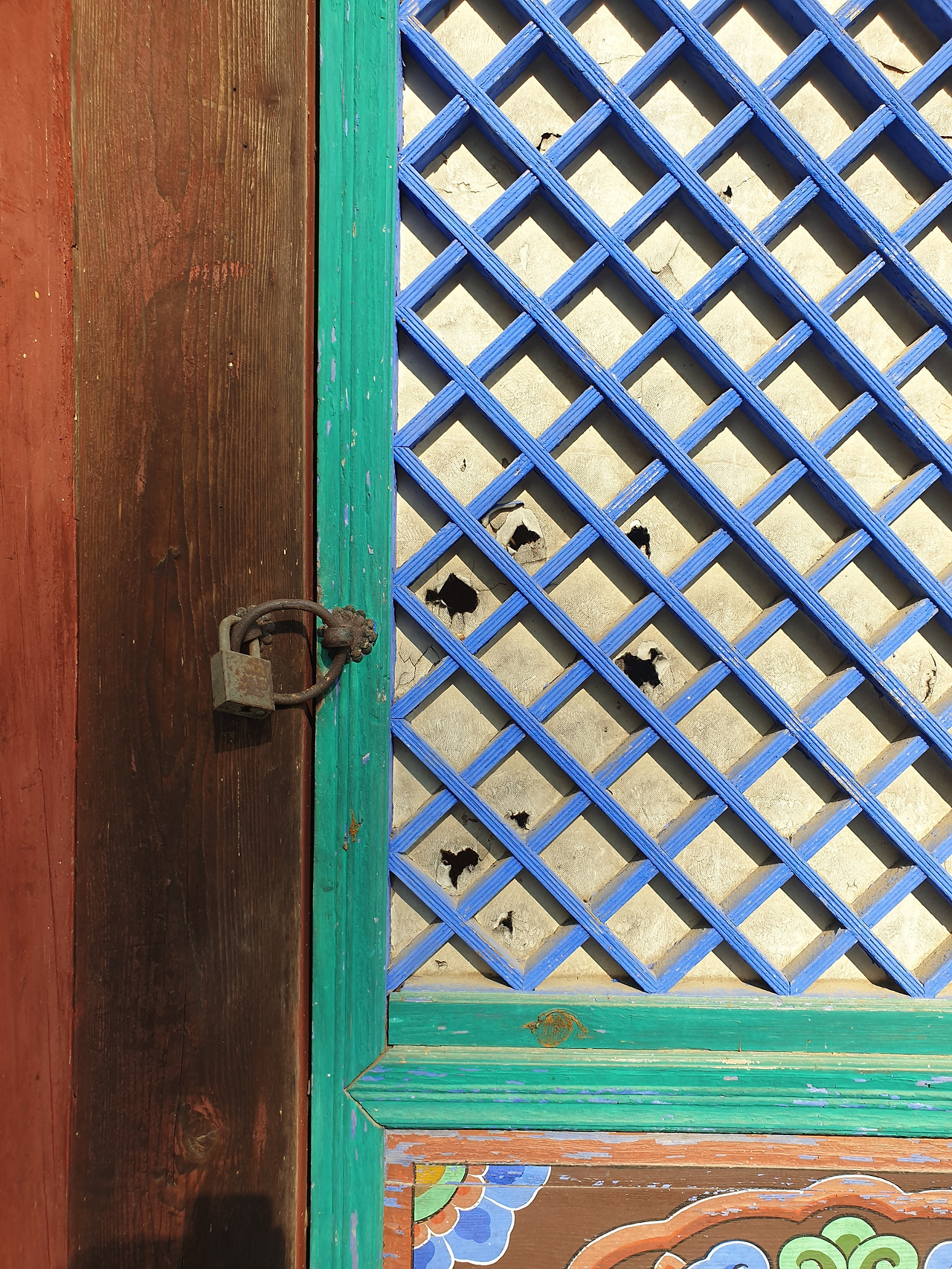 방은 어둡고 창틈으로 명주실 빛이 새어든다.