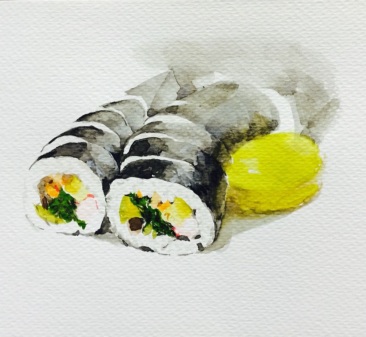 김 위에 밥을 펴 놓고 여러 가지 반찬으로 소를 박아 둘둘 말아 싸서 썰어 먹는 음식