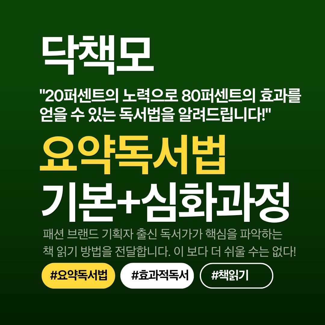 9년 차 독서가의 노하우를 집약한 <닥책모 요약독서법> 강의가 오픈됩니다.