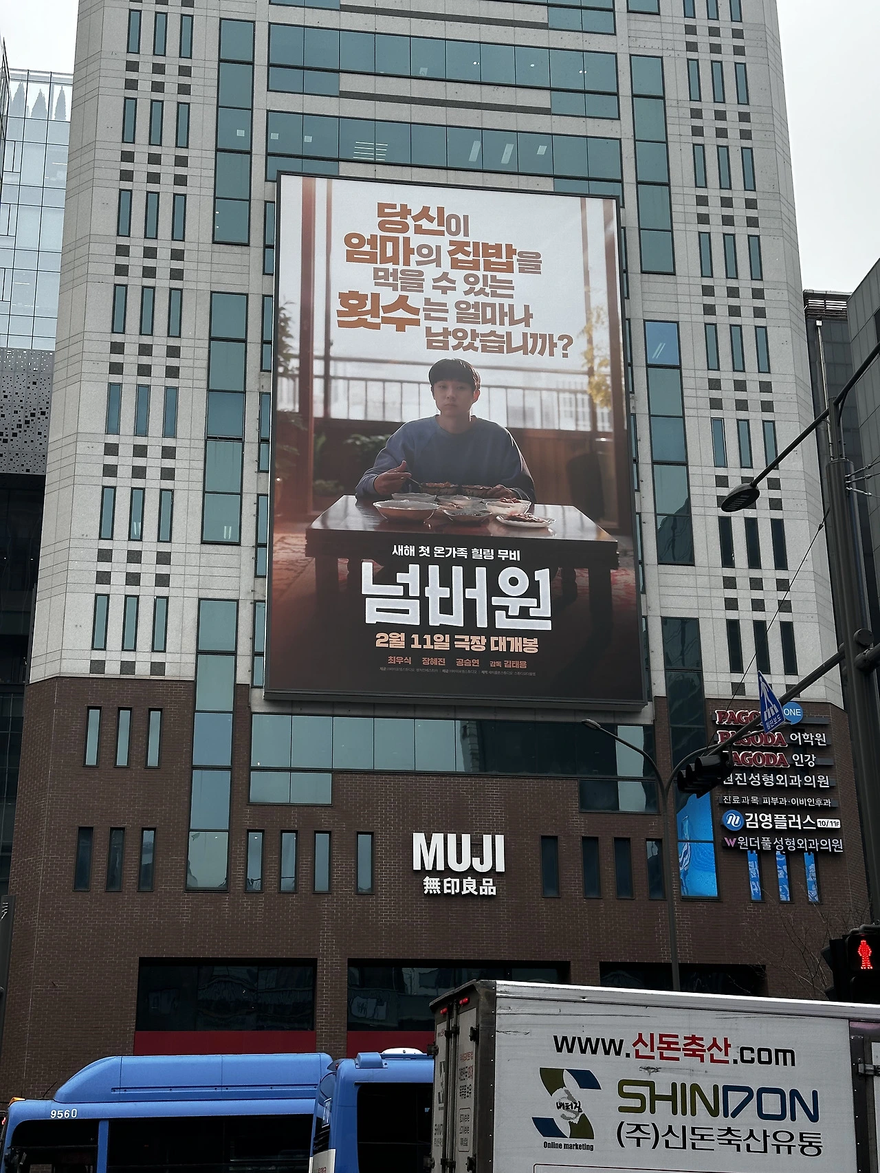 상을 물리고 나서 엄마와 같이 산책을 나가기로 했습니다. 세수하고 운동복 차림으로 엄마와 외출했습니다. 휴일이나 연휴 때면, 동네에는 다니는 사람이 적습니다. 구정 연휴라서 많은 상가들은 영업을 하지 않습니다. 엄마와 팔짱을 끼고 손을 잡고 걸었습니다. 횡단 보도 앞 빨간등을 바뀌고 우리는 섰습니다. 길 건너 대로 변 큰 건물에 대형 영화 포스터가 붙어 있었습니다.