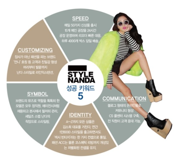 스타일난다는 화려한 브랜드 네이밍이나 글로벌 전략보다, ‘당당한 자기다움’으로 차별화했다. 20대 여성들의 솔직하고 대담한 감각을 그대로 드러냈고, 메이크업 브랜드 3CE 역시 같은 자기다움을 담았다. 스타일 난다는 국내를 넘어 글로벌 시장에서도 자기다움이 통한 브랜드로 성장하게 되었다. 이후 글로벌 기업 로레얄에 거액에 매각된 사례다.