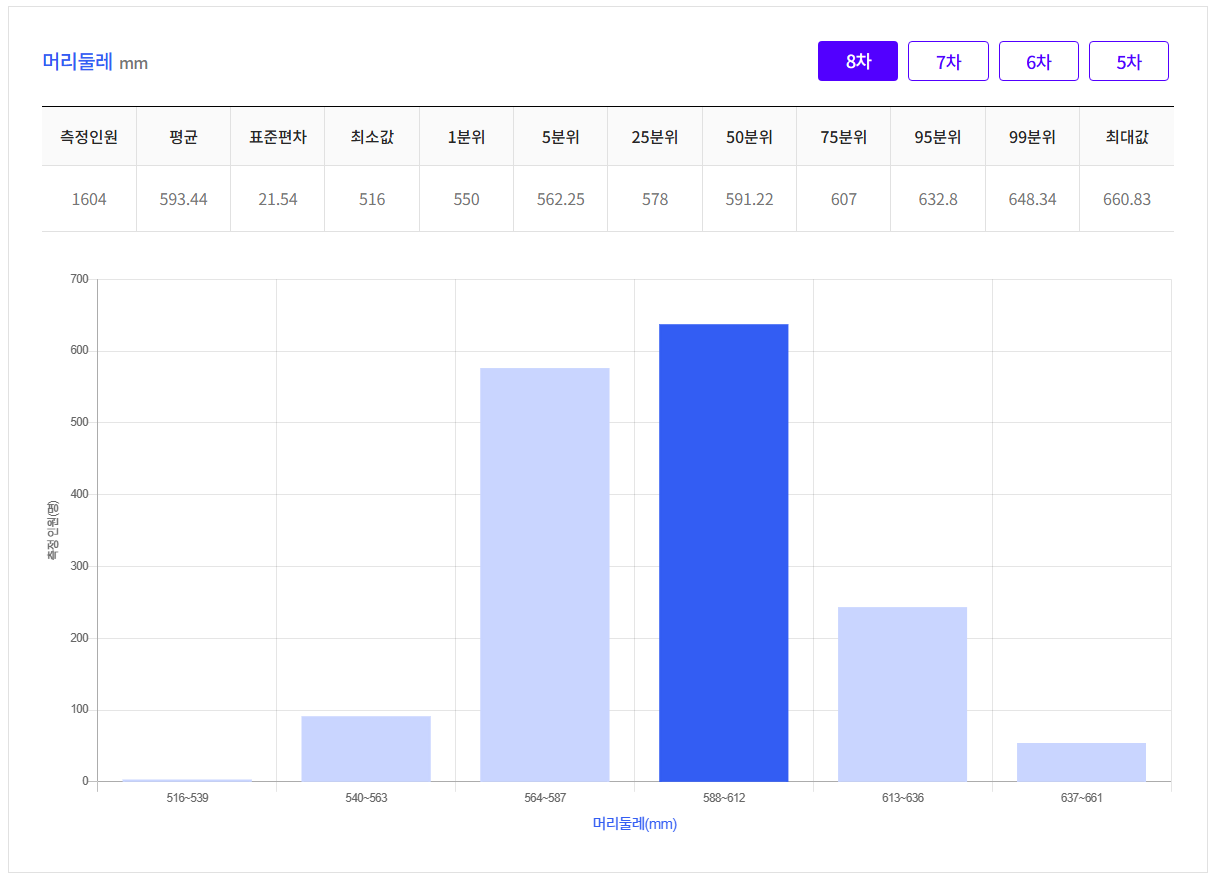 대한민국 2040 남성 평균 머리 둘레 59.34cm