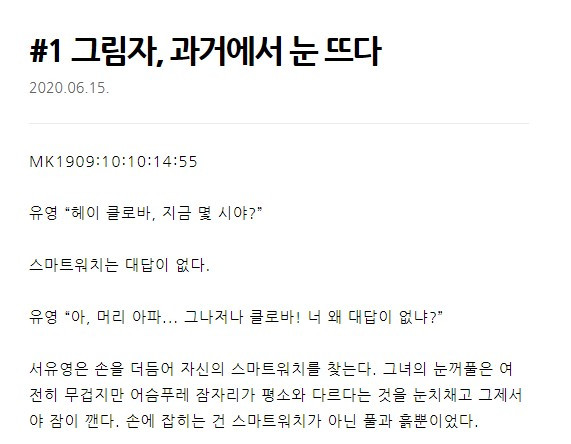 2061년을 사는 현재와 너무 멀지 않은 미래인이 1909년의 경성을 오는 설정을 극대화 하기에는 AI만 한 게 없었고, 기왕 하는 거면 클로바(Clova)를 선택하고 싶었다. 문제는 시작을 PPL로 했더니 원고를 써 나가면서 끊임없이 PPL 아이디어가 떠오르기 시작한 것이다. 직업병이 발동하는 순간이다.