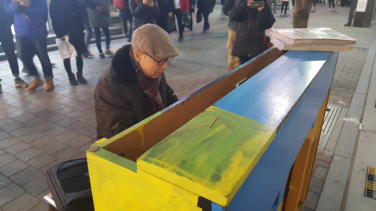 볼일이 있어 신촌 명물거리에 들렀는데 피아노 소리가 들리더군요.