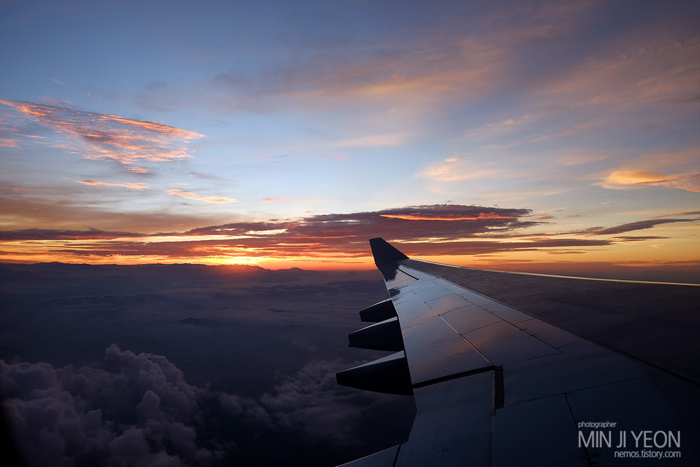 나중에 해가 구름 위로 확~ 올라오니깐 눈이 부셔서 쳐다도 못볼 정도 였지만..그래도 이렇게 멋진 일출을 비행기에서 볼 수 있다는건 정말 행복해요~ >ㅁ<