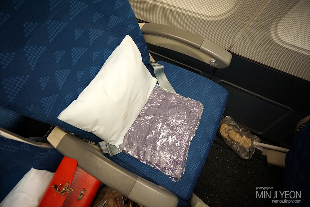 몰디브 대한항공을 타니 이렇게 담요와 쿠션을 준비해 놓았어요.