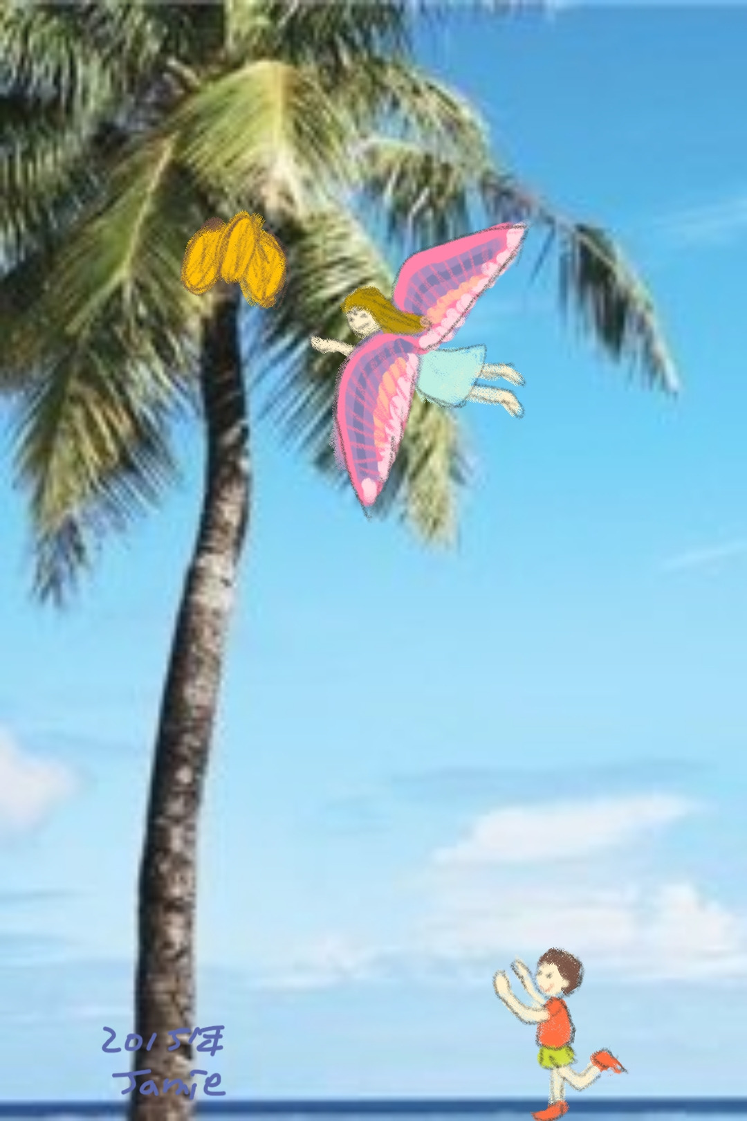 "엄마, 나 야자열매 하나 따 주세요."
