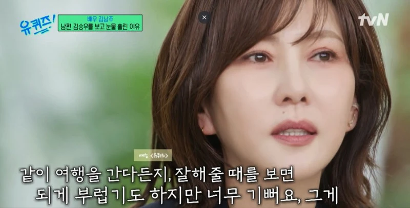 김남주가 유퀴즈에 출연해서 아버지의 부재로 인해 불우했던 유년과 그로 인해 강제로 치열해야만 했던 자신의 삶을 회고하며 남편이 아이들에게 잘하는 모습을 보며 감사와 동시에 부러운 감정이 들었노라 고백했다.