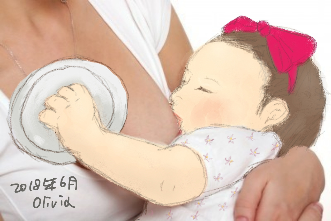 웃옷으로 엄마의 가슴을 스윽 덮으며