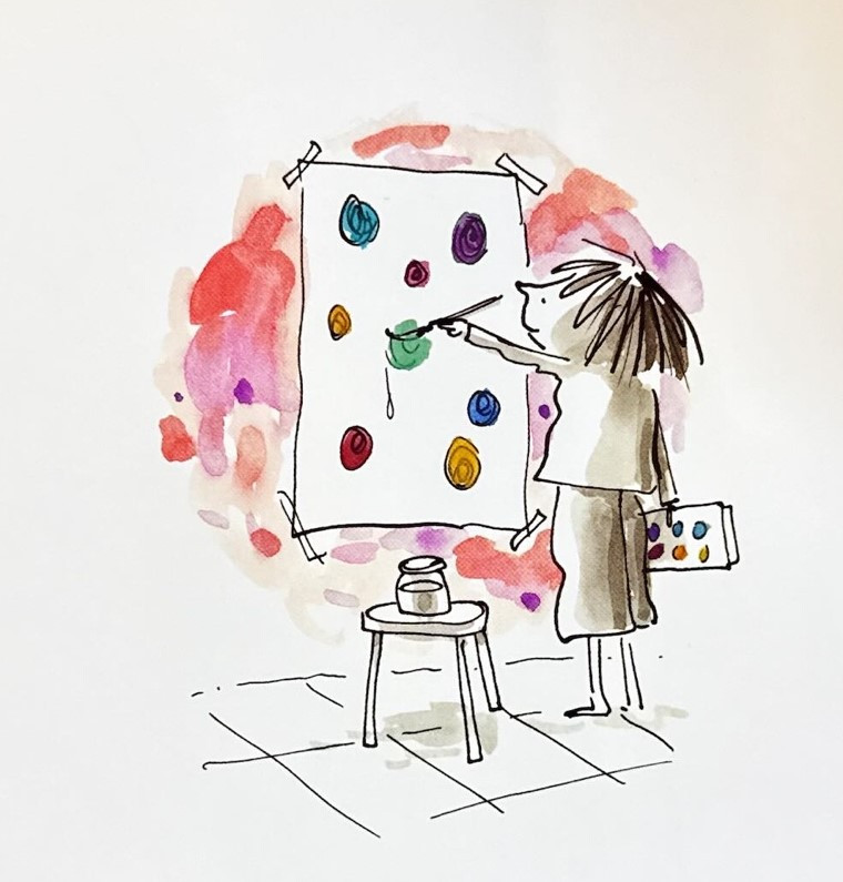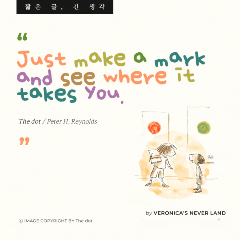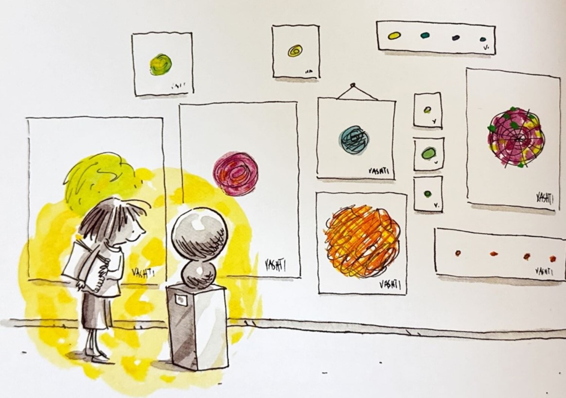그리고 며칠 뒤 Vashti는 미술 선생님의 교실 벽면에서골드색 프레임의 액자에 걸려있는 자신의 점이 찍힌