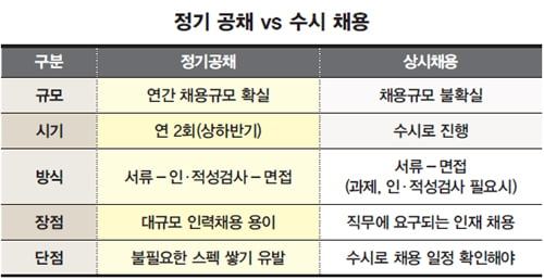 또 하나 신기한 현상은 취준생을 더욱 힘들게 만드는데, 수시채용으로 뽑는 사람을 경력직으로 채용하는 것이라는 점이다. 공개채용이 없어져 생신입이 되기 힘든데, 수시채용은 경력직을 뽑는다니... 많은 취준생들이 좌절하는 점일 것이다. 기업이 생존하기 위해 필요한 인원을 적극적으로 적재적소에 배치하기 위해 채용방식이 바뀌고 있다고는 하지만, 그것을 겪는 우리는 참으로도 암담하다는 것이 현실이다.