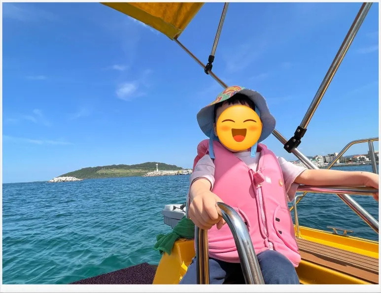 설레는 마음으로 구명조끼를 입고 나니, 가이드가 선착장으로 우리를 데려갔고, 그곳엔 모터보트가 있었다. 그리고 모터보트를 운전하는 가이드 청년은 아이와 함께 탄 우리에게 선물을 주고 싶었던지, 특별히 빠르게 바다 위를 달려주겠다고 선심을 썼다.