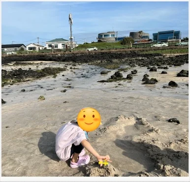 바닷가에 이르러 보니, 소라게가 잘 잡힐 것 같은 해변이 있었다. 집에서부터 들고 온 채집 도구를 꺼내어 아이 손에 쥐여주었다. 그리고는 세 가족이 다 함께 바지를 무릎 위로 걷어 올렸다. 그렇게 모래를 파고, 바닷물을 떠내고, 소라게를 잡다 보니 시간 가는 줄 몰랐다.