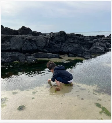 쭈그려 앉은 아이는 다리가 아직 짧아, 엉덩이가 물에 닿아 바지가 금세 젖어 들어갔다. 그렇게 우리는 세화의 매력에 흠뻑 빠져 들어갔다.
