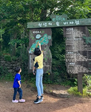 우리가 선택한 다음 목적지는 비자림이었다. 비자림은 500-800년 된 비자나무들이 빼곡한 숲이다. 탐방로에는 화산송이가 깔려 있고, 이끼와 울창한 나무들이 멋진 숲을 이루고 있는 곳이었다. 지난 제주 여행에서는 사려니숲을 걸었기에, 이번에는 비자림을 걷기로 했다.